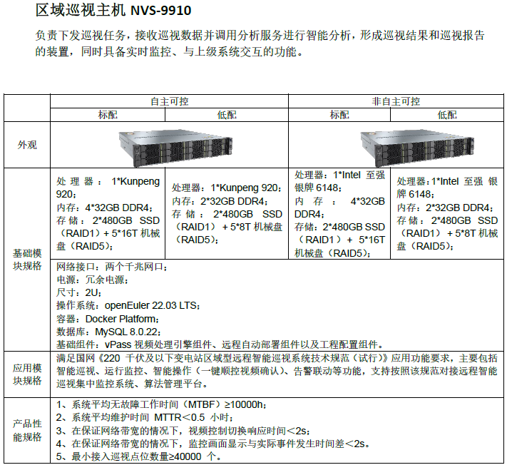 统筹网络通道资源和所需智能分析算力等因素,将一座集控站所管辖变电站划分为一个或多个区域,每个区域配置一套远程智能巡视系统,即变电站区域型远程智能巡视系统。变电站区域型远程智能巡视系统RIIS-10000是华雁智科自主研发的一款部署在厂站端的区域型远程智能巡视应用产品,它融合了信息通信技术、物联网技术和人工智能技术,支持可见光、红外热成像视频的接入,支持主设备监控系统和辅助设备监控系统的故障联动,支持智能机器人的联合巡视,融合了设备智能巡视、远方操作确认、生产安全监控等电力业务,可广泛应用于变电站(所)、配电所(房)、发电厂(站)等电力行业场所,也可应用于涵盖上述业务的工业巡检领域。